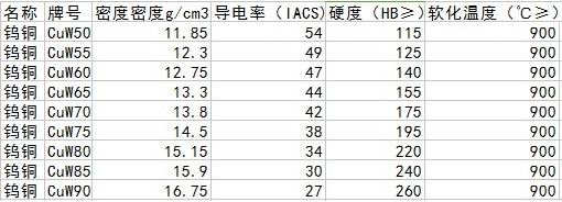 廣毅榮鎢銅合金性能表